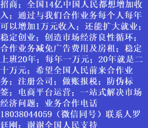 人進寶城全國招商;合作業(yè)務(wù)減免廣告費用;歡迎全國涉稅企業(yè)前來合作;業(yè)務(wù)合作電話 18038044059 聯(lián)系人羅廷剛